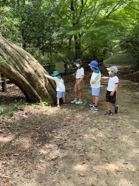 花の休憩所での木登り、自然に協力しあって助け合って登っていました