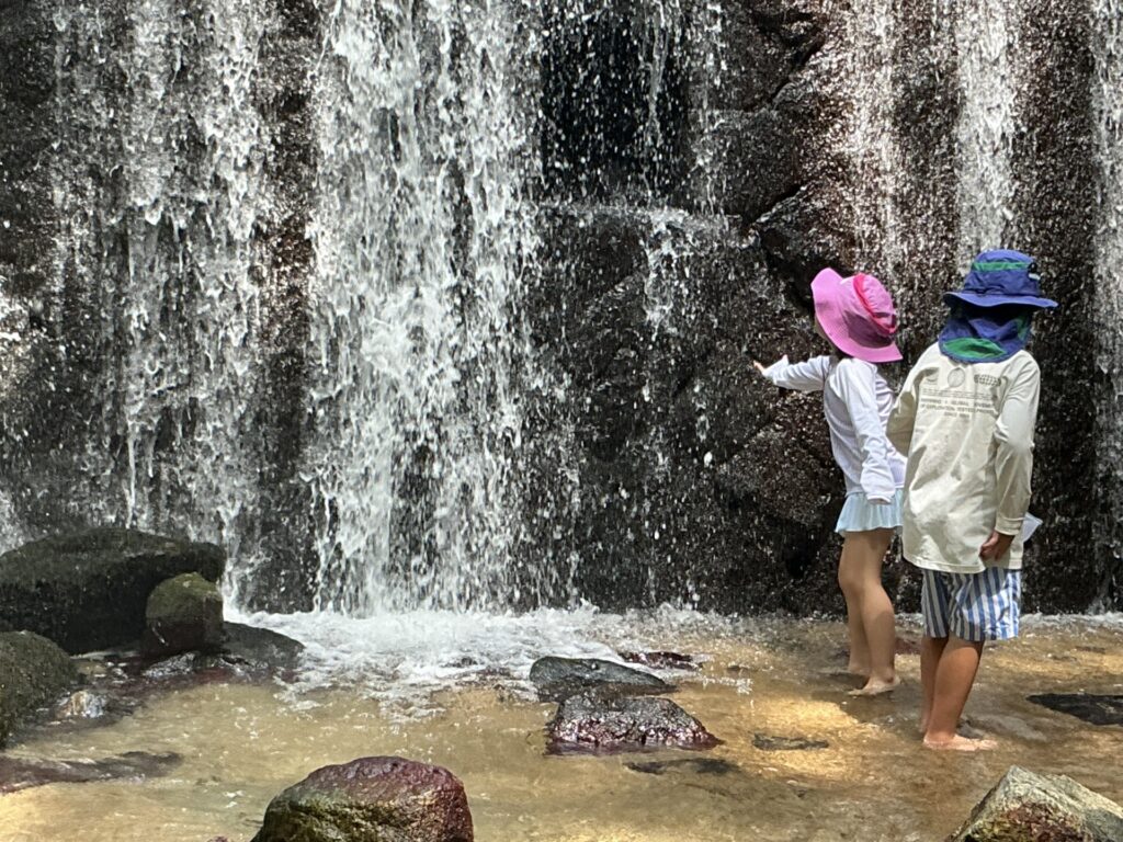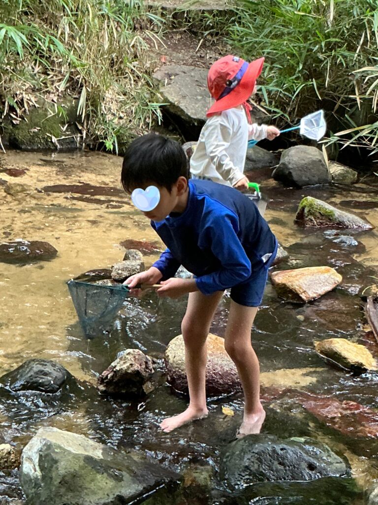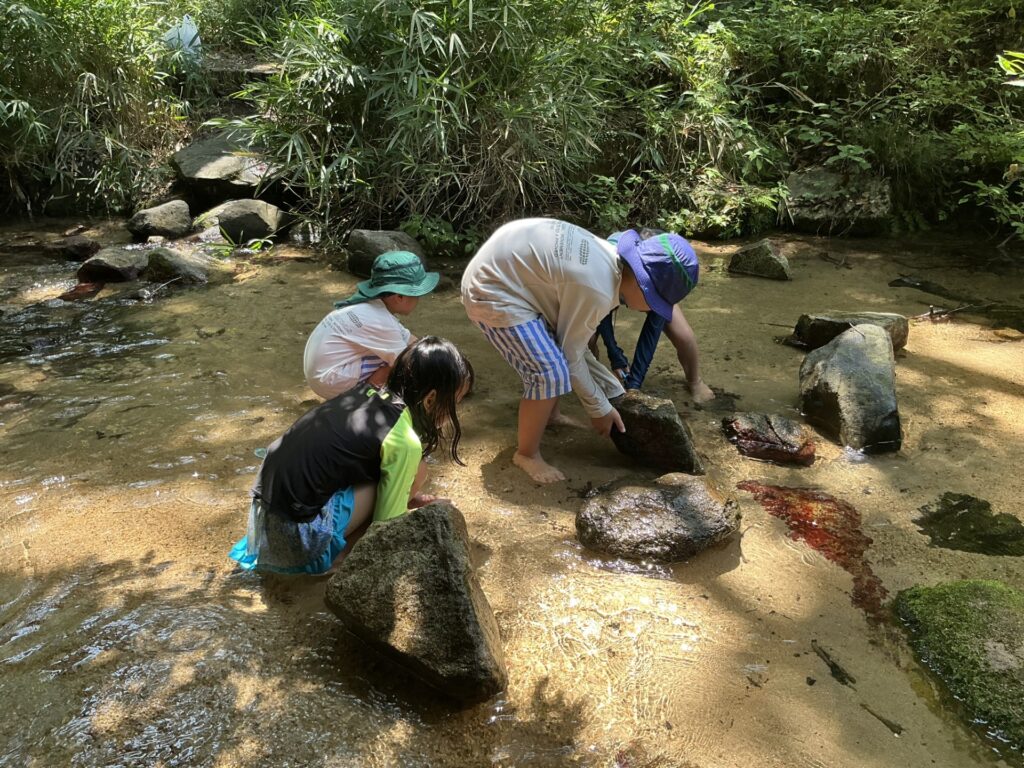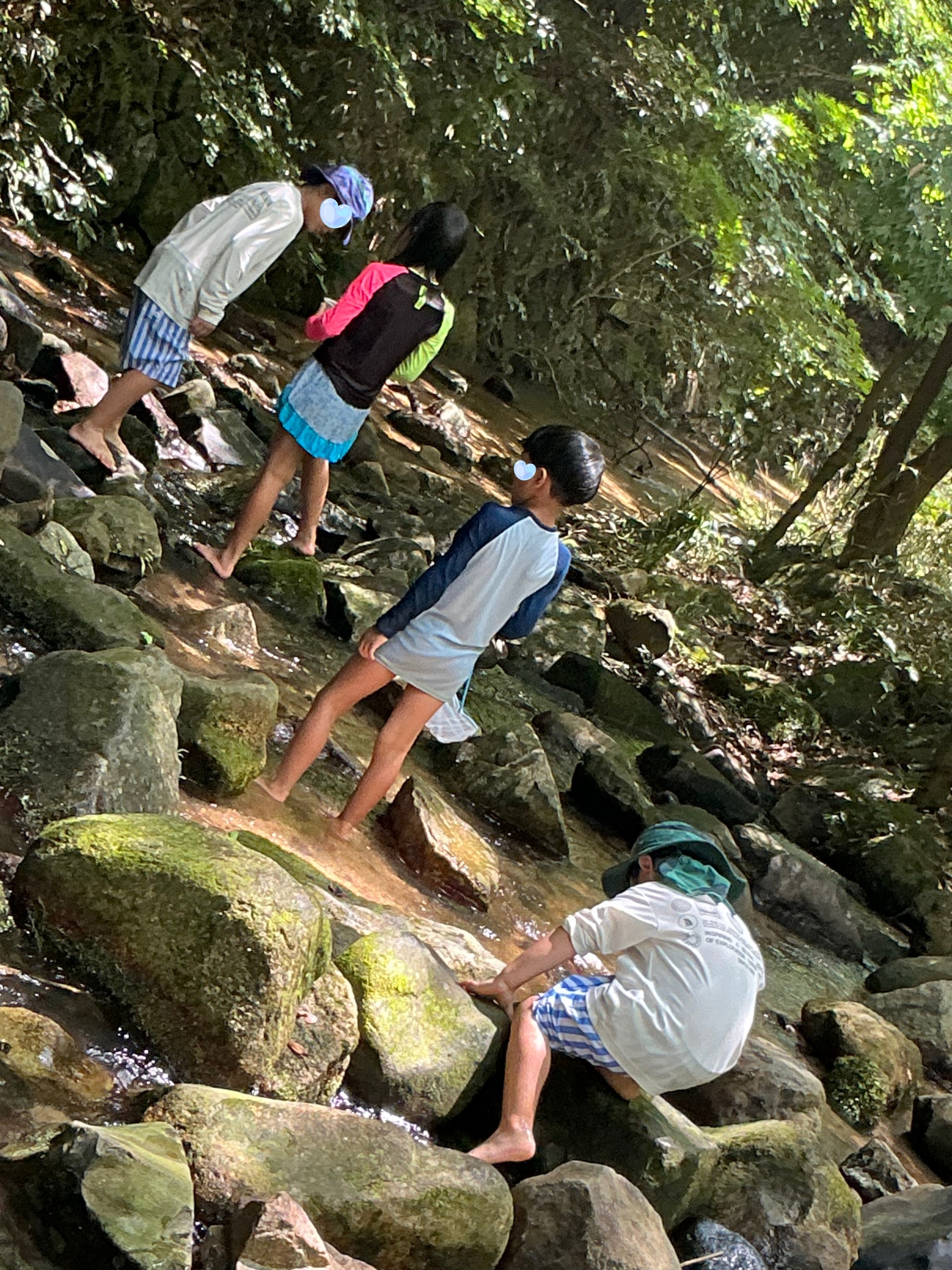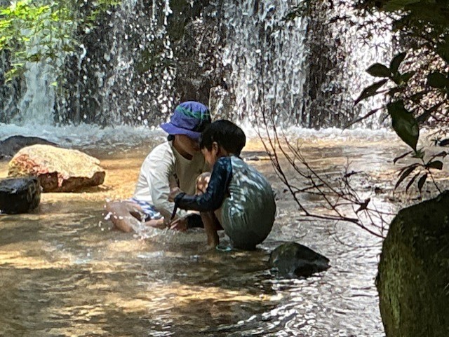 夏はやっぱり川遊び、もう慣れた烏原水源池の遊歩道