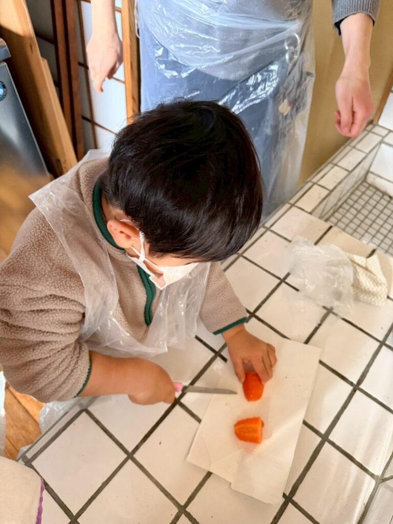 材料を炒めたり、煮込んだり調理に興味があるクワッピは台所でスタッフのお手伝い🥢