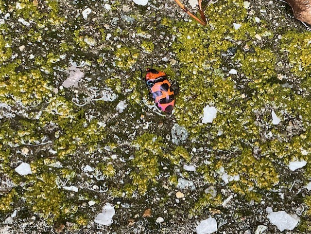 途中でオレンジ色の虫、てんとう虫より大きいぞ