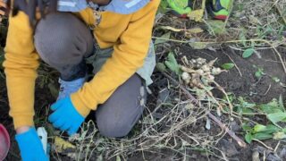 11月 菜園に収穫に行きました♪6月に植えた菊芋の収穫です菜園の方に収穫の仕方を教えていただき、みんなで茎を引っ張ります、あれ❓伸びた雑草抜く時もみんなで力を合わせて抜いたねだからみんなこうすればいいんだ!と力を合わせて茎...